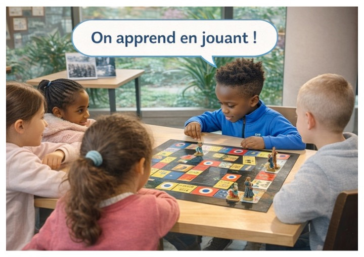 Pour conclure le voyage, les enfants participent à un Jeu collectif. Ils mobilisent ce qu’ils ont découvert tout au long du parcours : personnages, événements, valeurs de la République. À travers des questions, des échanges et la coopération, chacun se souvient, réfléchit et partage.