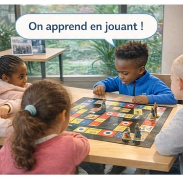 Pour prolonger le voyage dans l’Histoire, les enfants participent à un jeu de plateau coopératif. Le jeu permet de consolider les apprentissages tout en valorisant l’écoute, l’entraide et le plaisir de jouer ensemble